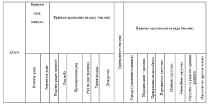 министар. Евиденција о радном времену садржи сљедеће податке: